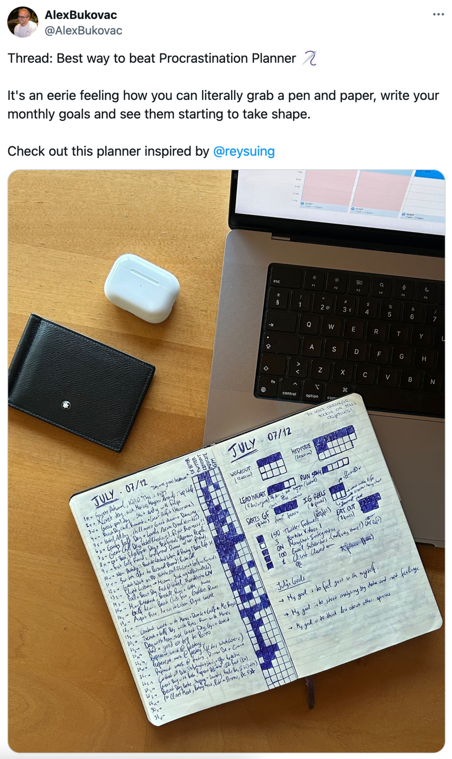 Alex shares how he uses the Life Tracker System to beat procrastination - just check out how many goals and habits he was able to accomplish over the month. It definitely becomes a lot harder to procrastinate when you have empty boxes of habits and goals staring back at you in your journal.