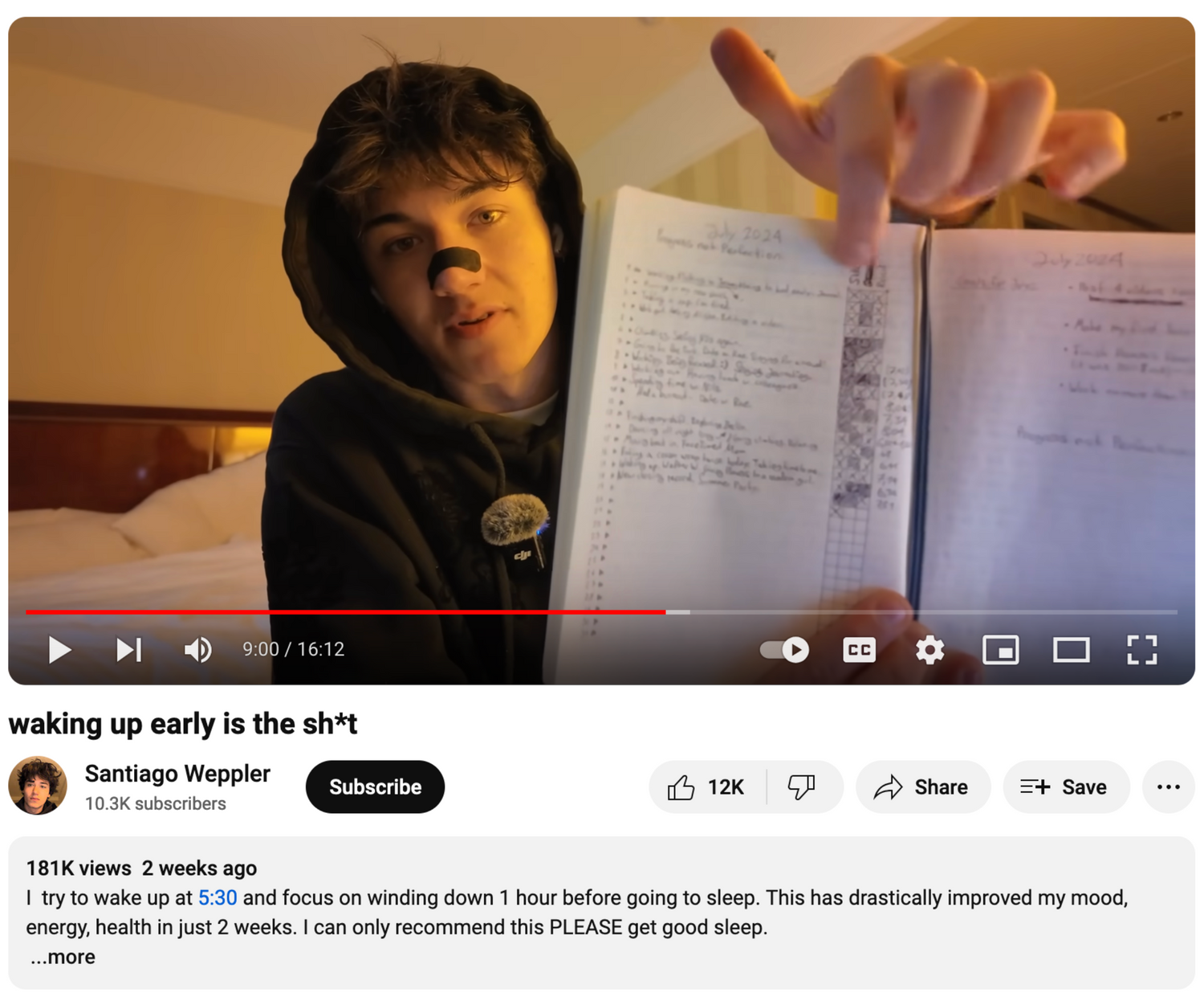 I came across this great video about waking up early. I was surprised to see that Santiago is an avid user of the Life Tracker System and uses it to keep track of his daily habits. Since I came across it, it's racked up nearly 2 million views. Go check out his video!